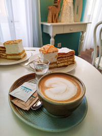Die Floch Cukrászda in Vác heißt Besucher herzlich willkommen und verzaubert mit traditionellen Rezepten, köstlichen Kuchen, Gebäck und süßen Leckereien für Jung und Alt. Aus natürlichen Zutaten wie frischer Milch, Butter und Früchten hergestellt, ist das Café der perfekte Ort für einen Kaffee, ein gemütliches Gespräch oder eine Familienfeier. Die warme, einladende Atmosphäre und der freundliche Service machen jeden Besuch zu etwas Besonderem. Von morgens bis abends geöffnet, bietet es immer etwas Köstliches, sei es ein schnelles Gebäck oder ein genussvolles Dessert. Hier fühlt sich jeder zuhause und kann die süßen Genüsse in angenehmer Umgebung genießen.