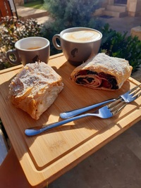 Wir sind ein neu eröffnetes Café und Frühstückslokal am Fuße des Kálvária-Hügels in Tata, unsere Küche ist bis 12:00 Uhr geöffnet. Wir bieten Eiergerichte, Gebäck, vegane und allergenfreie Optionen sowie Kaffee mit alternativen Milchsorten an. Wir haben täglich von Montag bis Sonntag ab 8:00 Uhr geöffnet, freitags und samstags begrüßen wir unsere Gäste bis 22:00 Uhr. Außerdem übernehmen wir die Durchführung kleiner Firmen- und Familienveranstaltungen, bei Bedarf auch mit Übernachtungsmöglichkeiten.